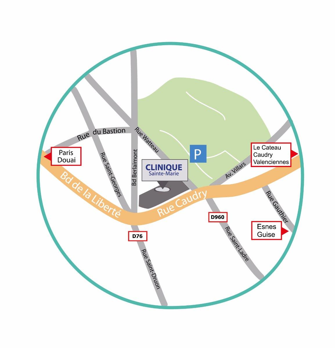 • prendre la navette de la ville : arrêt clinique Sainte Marie